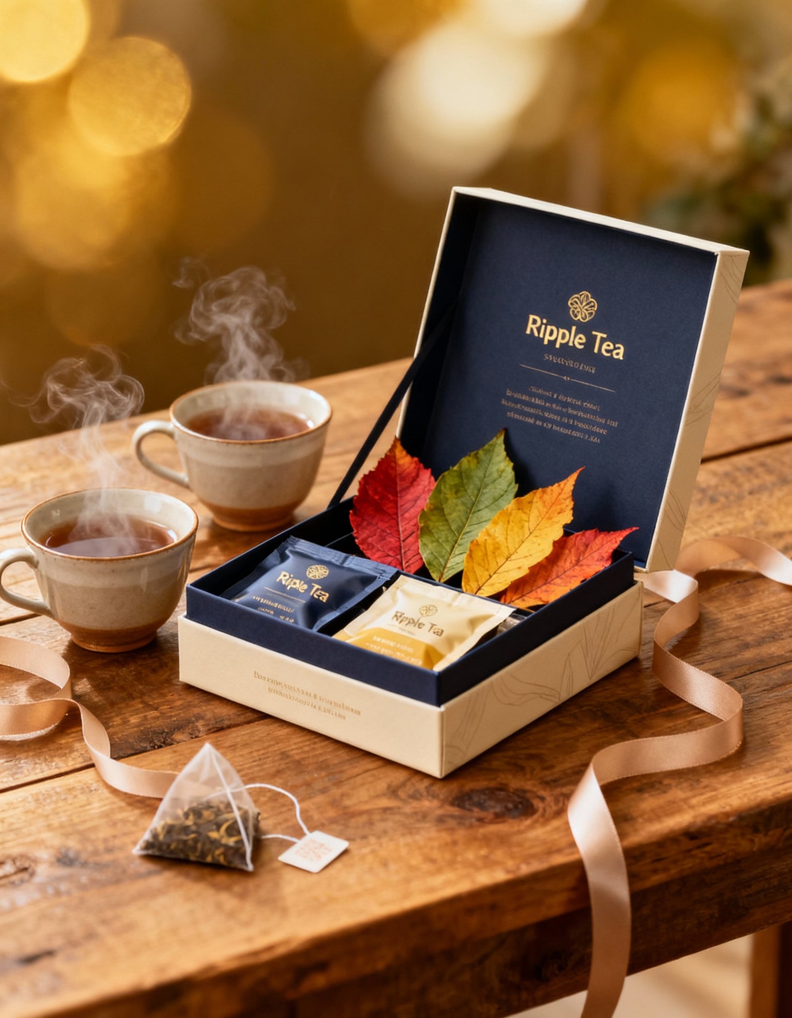 For those who love floral flavours and a touch of romance, the Ripple Aromatic Rose Teas Gift Box is a beautiful option. This 75 g box combines classic teas with natural rose extracts, bringing elegance and charm to every cup.