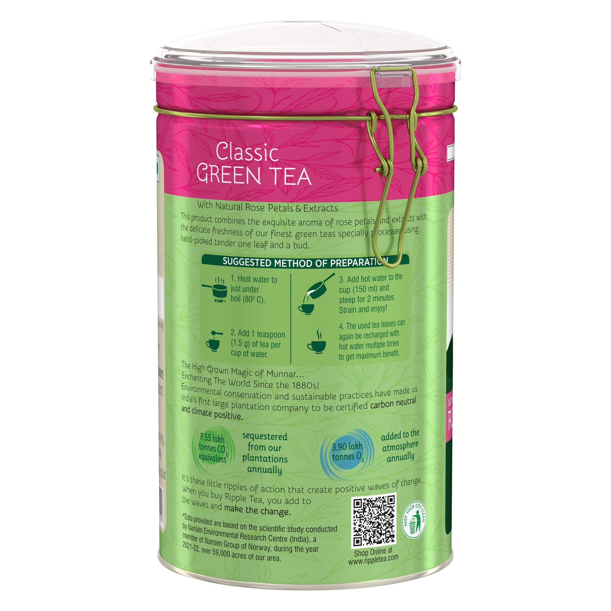 - Preparation :Add one teaspoon of Green Tea Classic into a pan, Measure one cup of water and add into the pan, Bring the water to first boil (80 degree), Pour the water over the leaves and steep for 2 mins, Strain the tea leaves, Ready to drink, Green tea is best consumed without milk and sugar, However, honey or lemon can be added for taste.