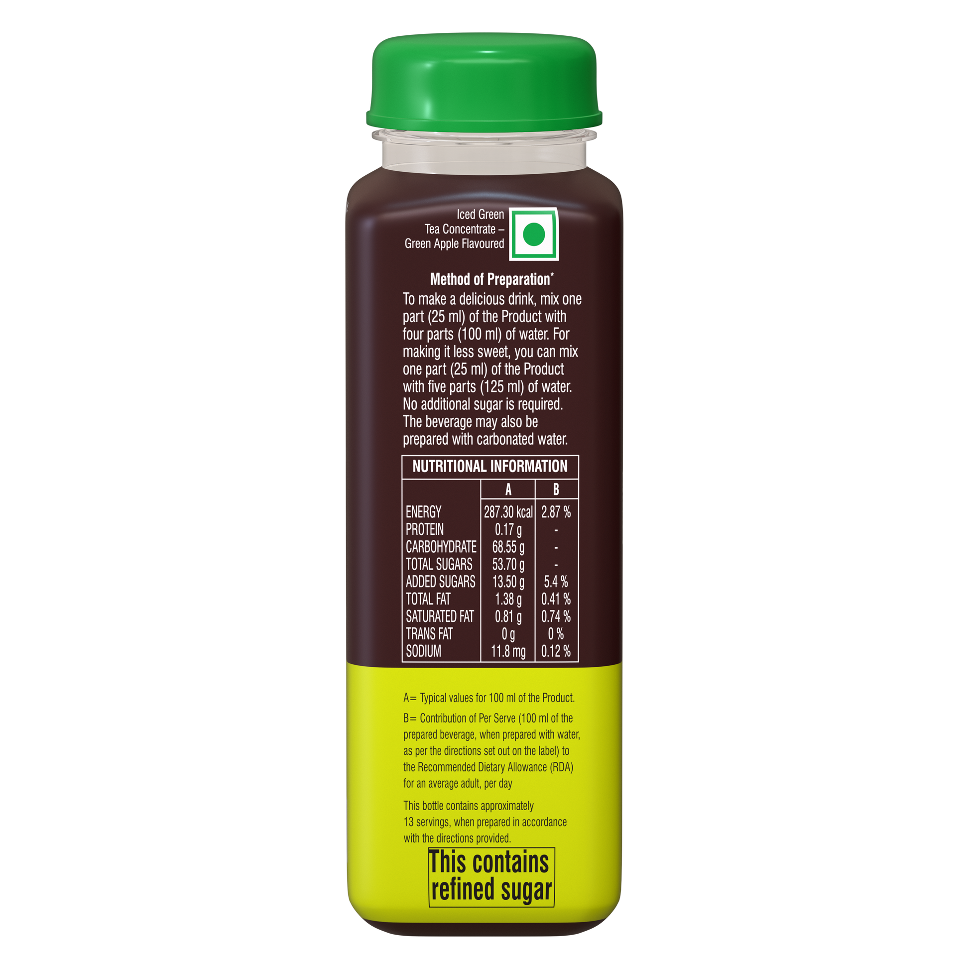 - Preparation :To make a delicious drink, mix one part of the Ripple Green Apple ice tea concentrate with four parts of chilled water. No sugar is required. Drink can be prepared with carbonated water also.