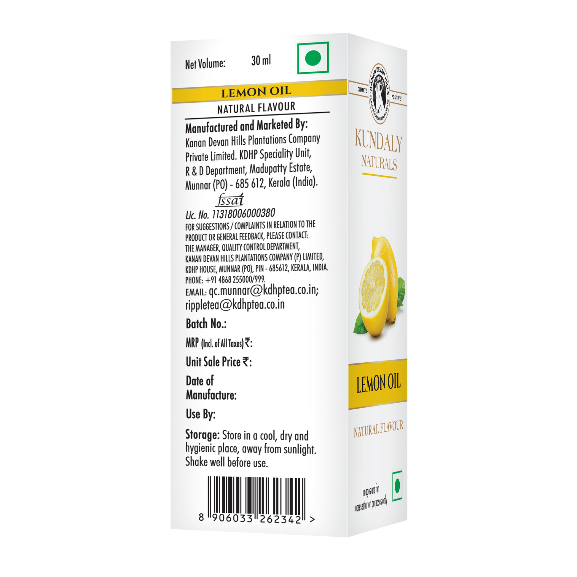 Kundaly Naturals Lemon Oil Natural Flavour - 30 ml