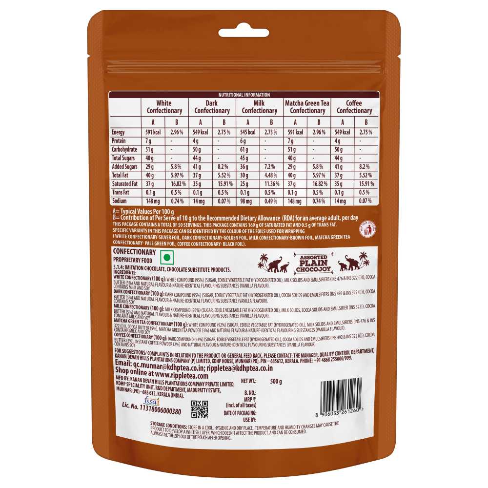 Ripple Treats- Assorted Plain Chocojoy is a delicious handmade premium confectionery with 5 variants in one pack. The variants are:
